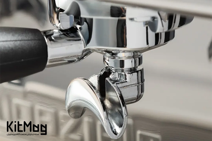 - پورتافیلتر (Portafilter): پورتافیلتر دانههای قهوه را نگه میدارد. تمیز کردن منظم پورتافیلتر و فیلتر داخل آن ضروری است زیرا دانههای قهوهٔ قدیمی میتوانند کهنه شوند و طعم اسپرسوی بعدی شما را خراب کنند.
