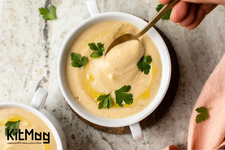 مثال: ولوتهٔ شقاقل ( parsnip Velouté) با بافتی لطیف و نرم، مثل نوازشی زمستانی.