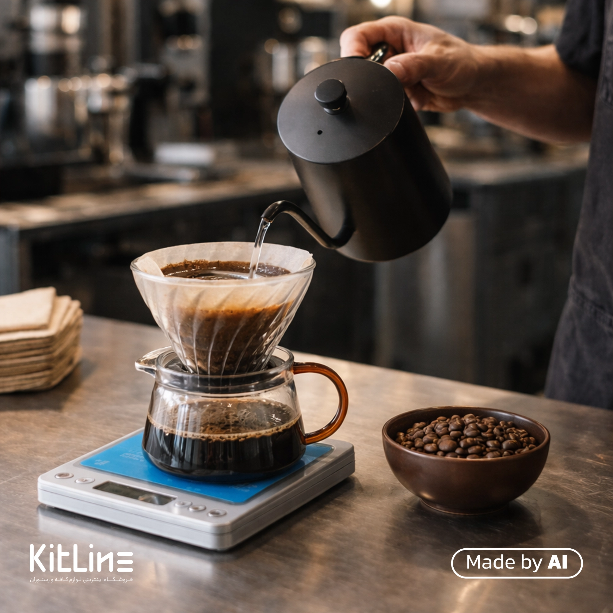 • ترازو دیجیتال(اسکیل): ترازو دیجیتال امکان اندازه‌ گیری دقیق وزن قهوه را فراهم می‌کند.