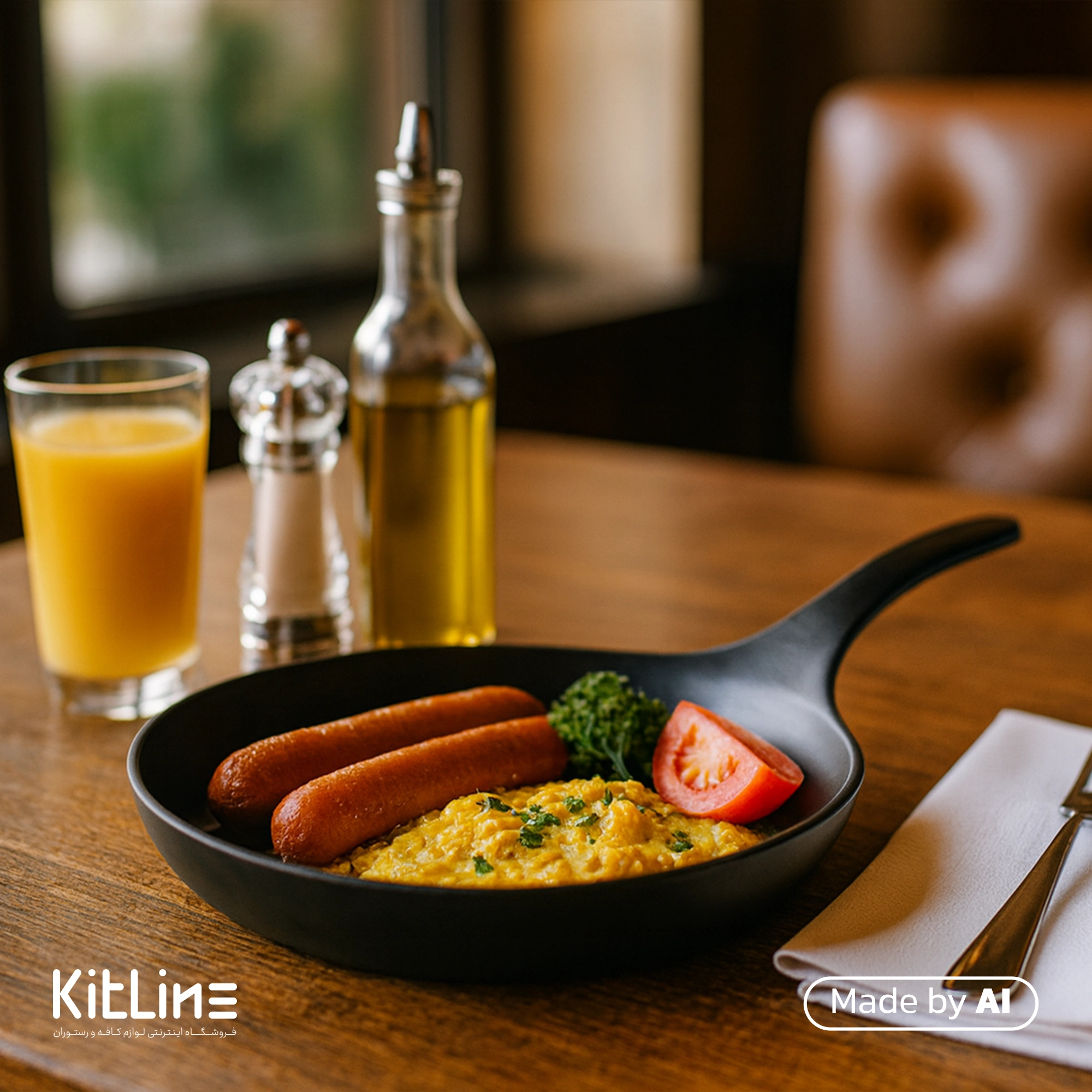 طراحی خاص به شکل ماهیتابه: طراحی این ظرف به صورت ماهیتابه ای مدرن و جذاب انجام شده است. این فرم خلاقانه علاوه بر زیبایی ظاهری، امکان سرو متفاوت و چشمگیر غذاها را فراهم میکند. چنین طراحی ای تجربه مشتری را ارتقا میدهد و باعث میشود سرو غذاها حرفه ای تر و خاص تر به نظر برسد.