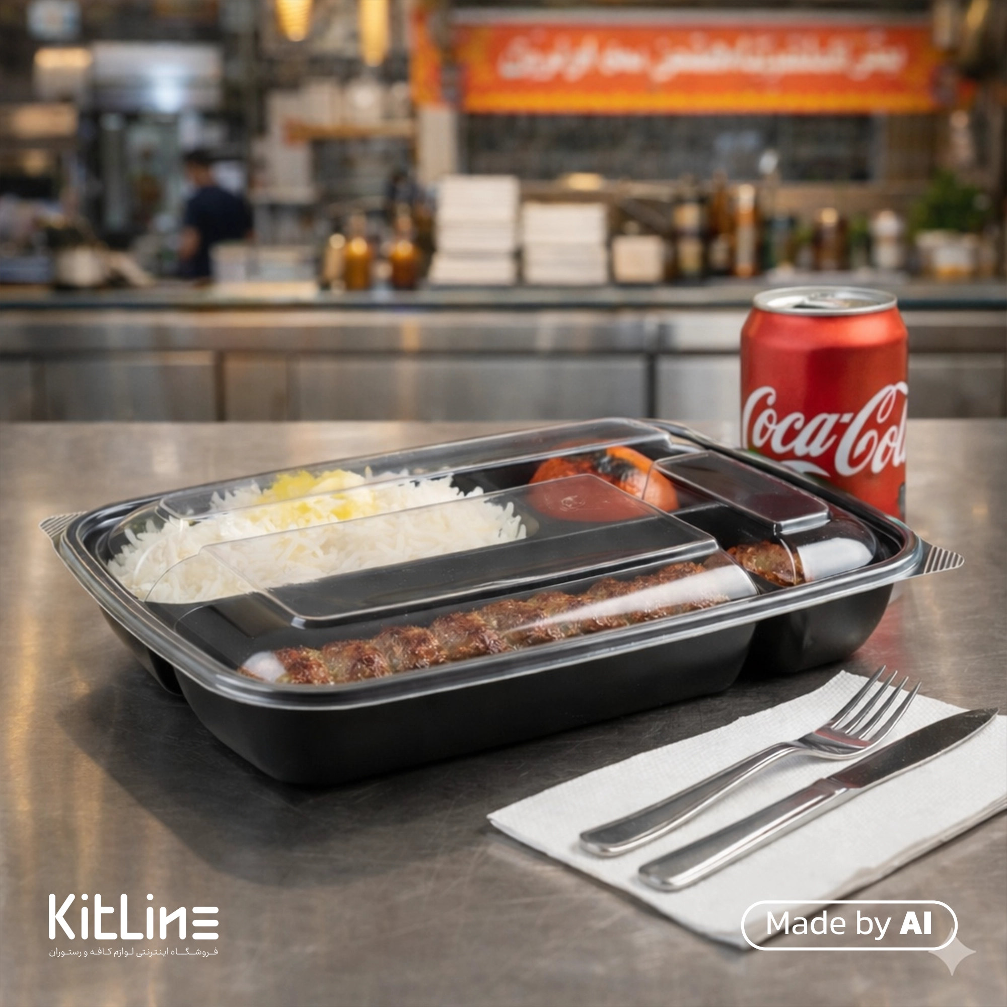 کیت لاین این محصول را در بستهبندی کارتن ۱۲۰ عددی از برند معتبر طب پلاستیک عرضه میکند. ظرف سه خانه کبابی مشکی با درب شفاف، انتخابی مطمئن برای بستهبندی و سرو غذاهای متنوع در رستورانها و سرویسهای دلیوری است.