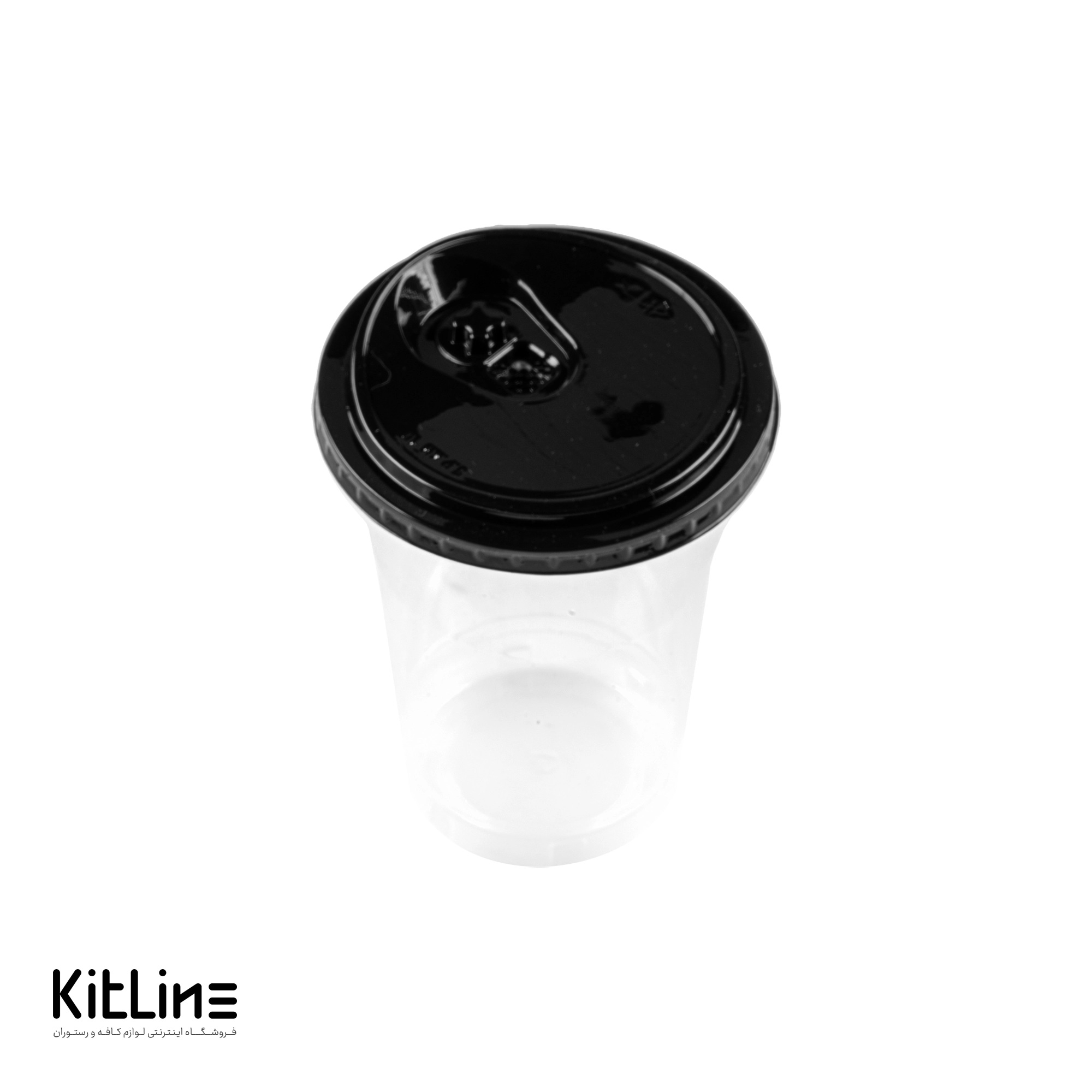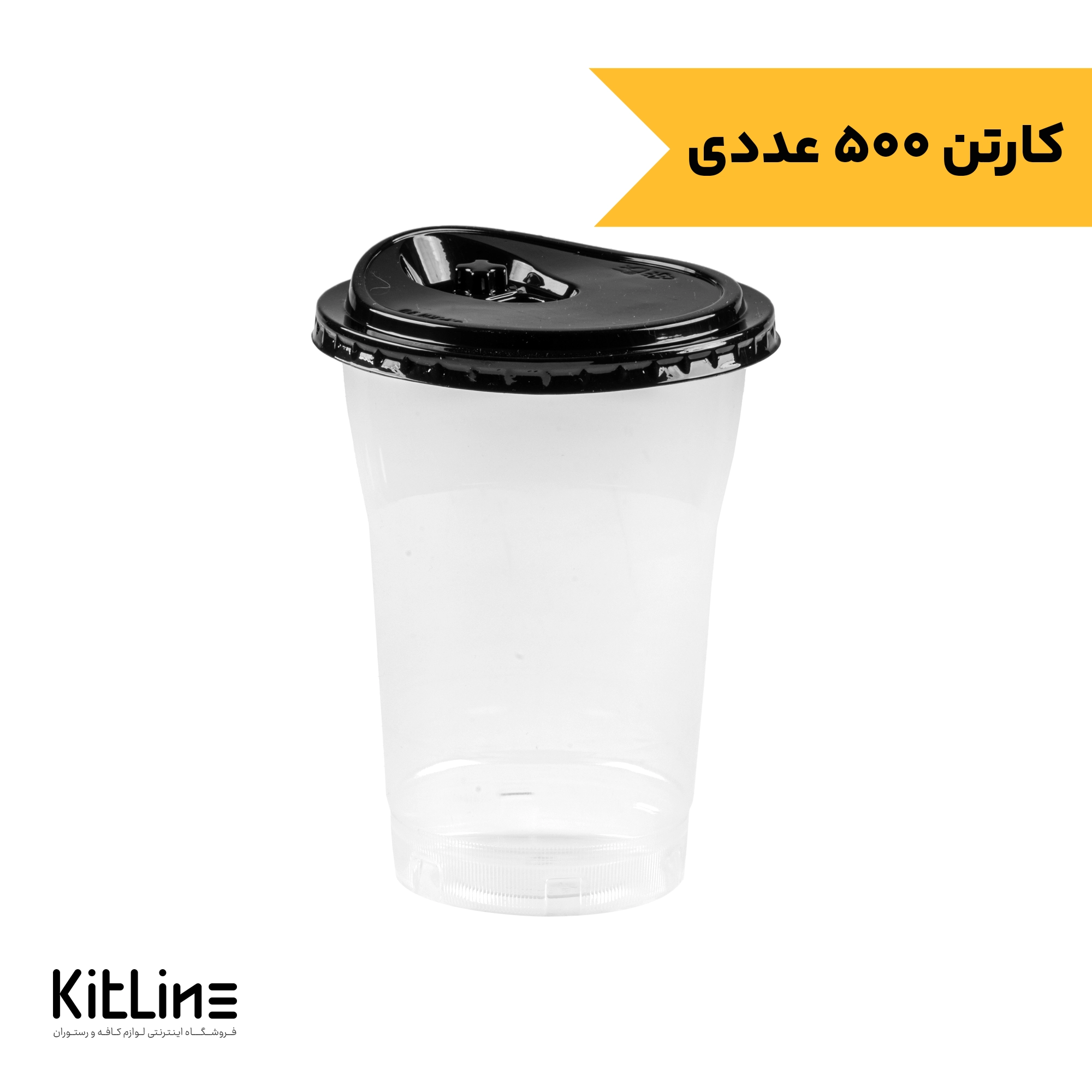 لیوان یکبار مصرف پت همراه با درب مشکی ۵۰۰ میلی لیتری صنایع پلاستیک خوزستان (کارتن ۵۰۰ عددی)
