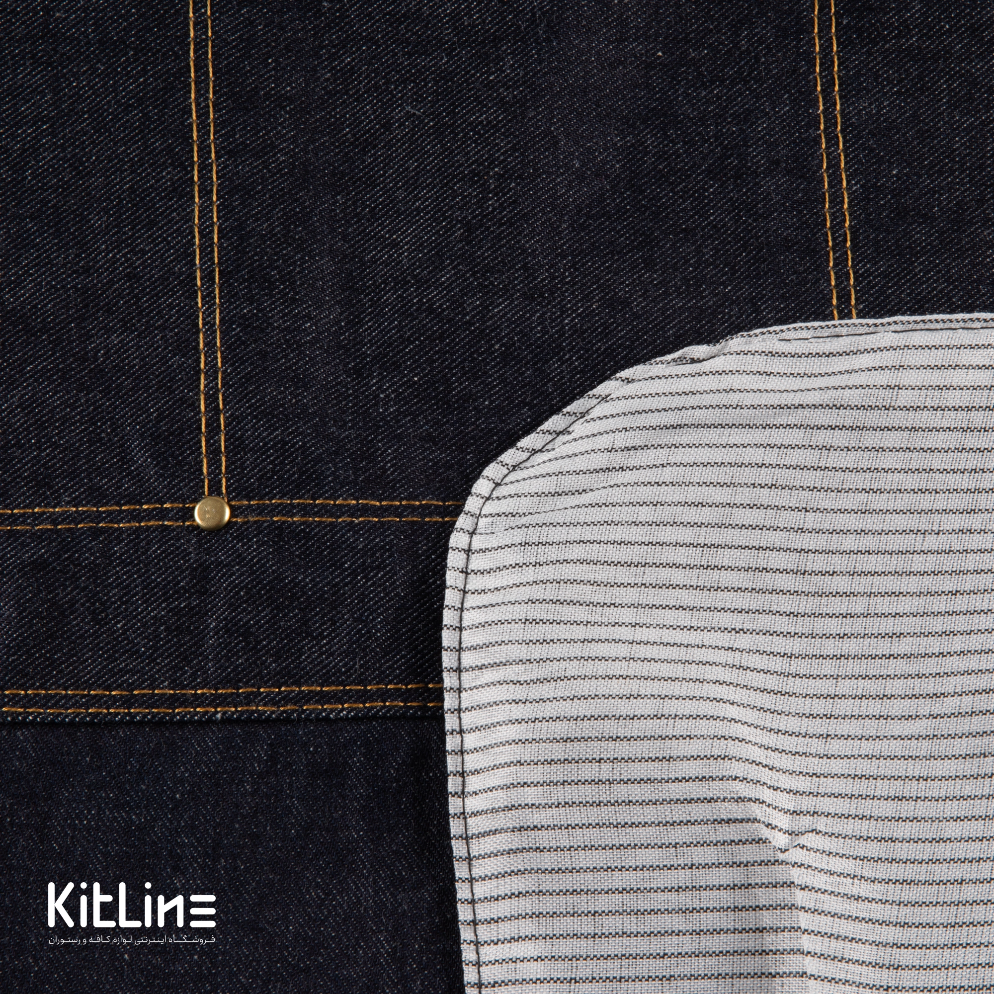 جنس پارچه جین باکیفیت و بادوام: این پیشبند از پارچه جین ضخیم و مقاوم ساخته شده که شست و شوی مکرر را بدون تغییر رنگ یا فرم تحمل میکند. بافت نرم و مقاوم آن راحتی کارکنان را در طول شیفت های طولانی تضمین میکند. دوام بالایی در محیط های حرفه ای دارد.