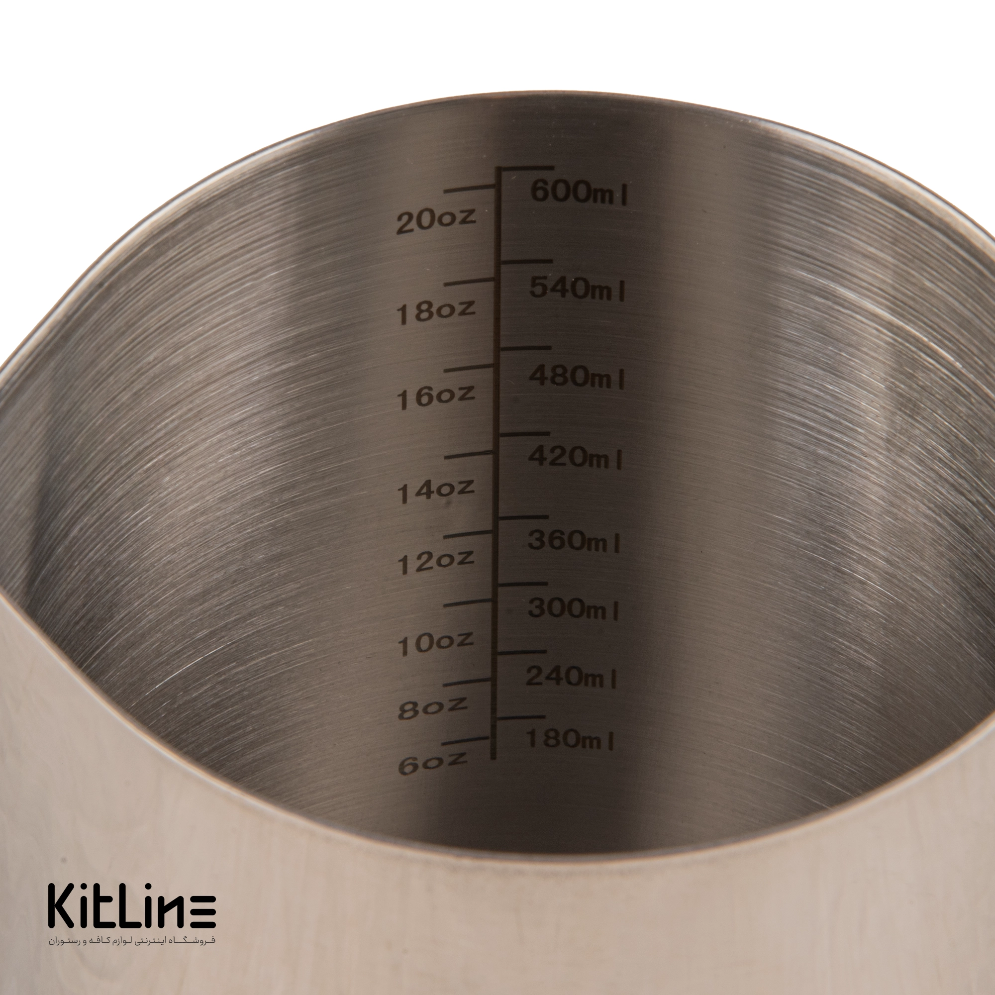 داخل این پیچر، درجهبندی دقیق ظرفیت هم به میلیلیتر (ml) و هم به اُنس (oz) درج شده است تا اندازهگیری مایعات با توجه به هر دو استاندارد انجام شود. این ویژگی باعث میشود باریستاها و آشپزهای حرفهای بتوانند با دقت بیشتر و بدون نیاز به ابزار جداگانه، مقدار شیر یا مایعات دیگر را تنظیم کنند.