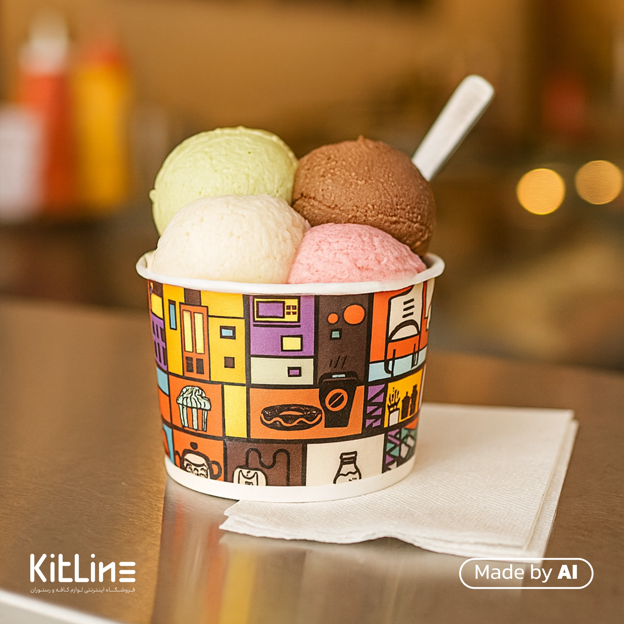 حجم ۲۵۰ میلی لیتری: مناسب برای سرو بستنی و خوراکیهای سرد در بستنی فروشیها.